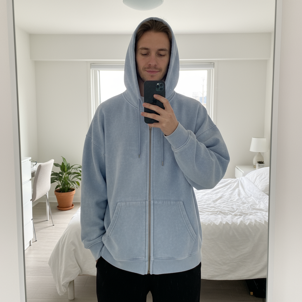 Fit: Heavy Oversized – designed for that perfectly relaxed, roomy feel. With extra space through the shoulders, chest, and waistband, plus a dropped shoulder silhouette, this fit is made for serious layering—you can even throw it on over another hoodie. Wear it unzipped for an effortless, laid-back vibe or zip it up when you want full-on coziness. Made with our Super Soft Combed Cotton Blend for comfort that moves with you.